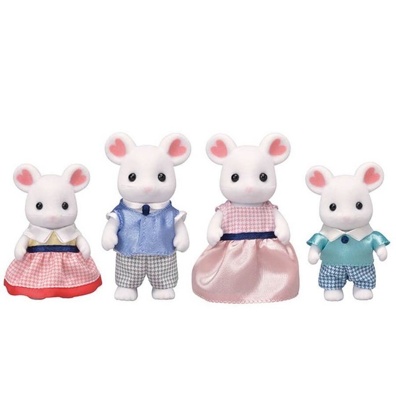 Coleção Sylvanian Families - Família Ratos Marshmallow da Epoch, diversão e aprendizado para os pequenos! Em Sylvanian Families você encontra todos os tipos de animais que vivem em uma floresta imaginária. Esta adorável coleção de brinquedos permite o desenvolvimento da criatividade individual e da imaginação sem fim através do faz-de-conta. Como as famílias de verdade, estes animais adoráveis possuem todos os membros da família para compartilhar. Com casas atraentes e cheias de detalhes, mobílias e acessórios, e outros cenários incríveis as crianças conseguem ampliar suas histórias originais. As peças que compõem a coleção Sylvanian Families são vendidas separadamente. A família dos ratos marshmallow é uma linda família que tem flores em suas orelhas. O papai rato marshmallow ama comida, a mamãe rato marshmallow é inteligente, o irmão rato marshmallow tem uma excelente memória e a irmã rato marshmallow é sensacional em aritmética. Conheça essa maravilhosa família. Mascote colecionável com membros articulados. Conjunto de 4 peças: pai, mãe, irmão e irmã Bom para estimular a criatividade e imaginação em crianças. Adequado para crianças de 3 anos e acima.