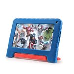 O Tablet Infantil Avengers vem com uma case emborrachada e com alça que protege o dispositivo e garante mais conforto e segurança.