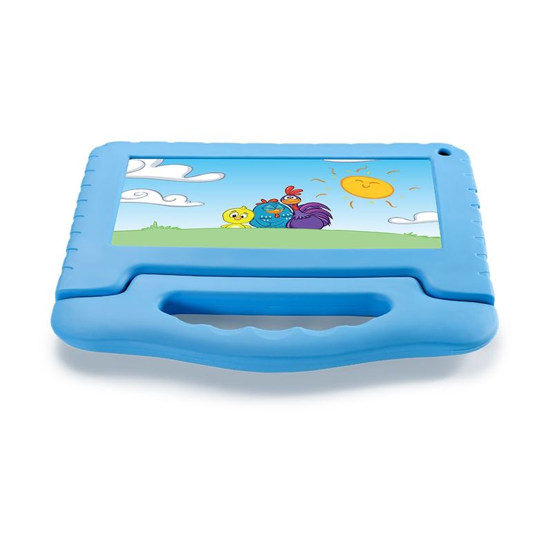 O Tablet Infantil Galinha Pintadinha vem com uma case emborrachada e com alça que protege o dispositivo e garante mais conforto e segurança.
