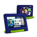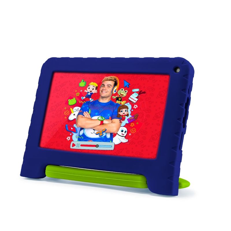 O Tablet Infantil Luccas Neto vem com uma case emborrachada e com alça que protege o dispositivo e garante mais conforto e segurança.