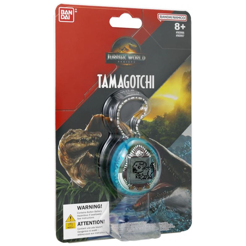 Tamagotchi Nano Jurassic World Rebirth Mosasaurus é um brinquedo eletrônico portátil que permite cuidar de dinossauros virtuais em um dispositivo em formato de ovo com acabamento azul translúcido inspirado no Mosasaurus saindo do oceano. O produto faz parte da colaboração oficial com a franquia Jurassic World Rebirth e apresenta cenas e animações baseadas nos filmes ao longo do dia.?