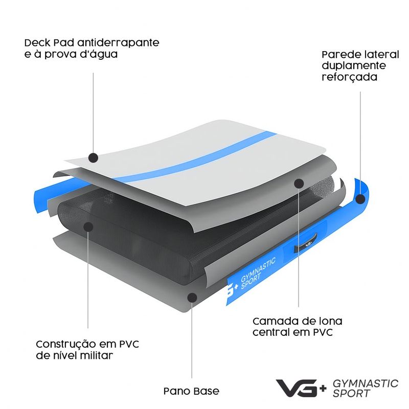 Tapete Colchão Ginástica Inflável 3 Metros com Bomba Elétrica VG Plus Azul 220v