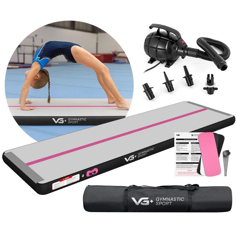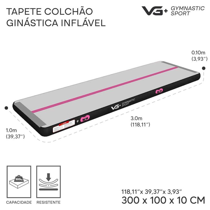 Tapete Colchão Ginástica Inflável 3 Metros com Bomba Elétrica VG Plus Preto e Rosa 220v