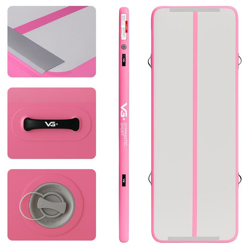 Tapete Colchão Ginástica Inflável 3 Metros com Bomba Elétrica VG Plus Rosa 220v