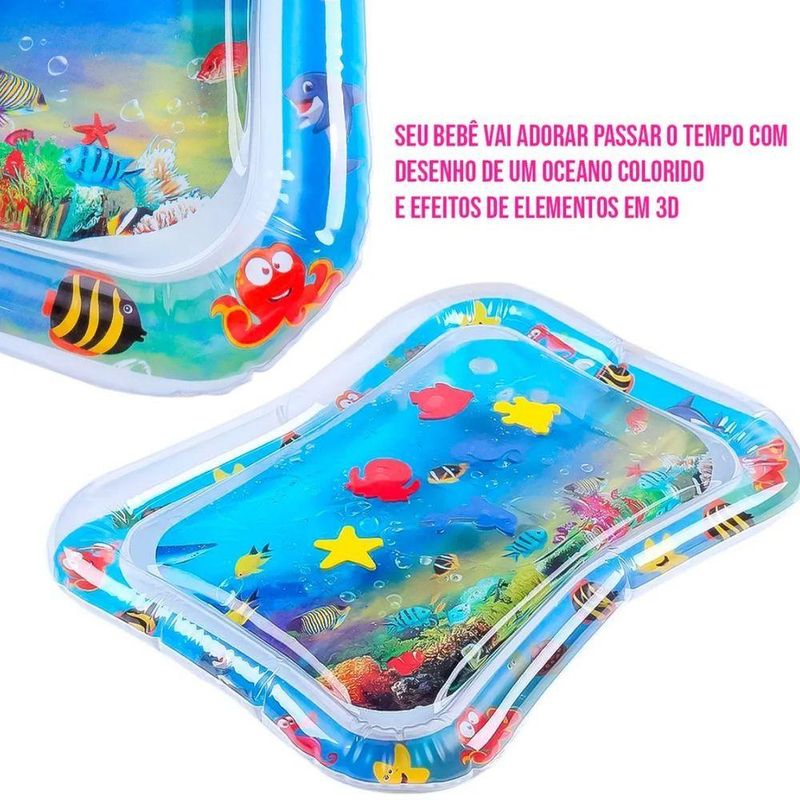 Tapete De água Inflável Bebê Desenvolvimento Sensorial InfantilProporcione momentos de pura diversão e aprendizado para o seu bebê com o Tapete Inflável Infantil DDG Toys!Desenvolvido especialmente para estimular a coordenação motora, a curiosidade e o desenvolvimento sensorial, esse tapete aquático cria uma experiência única de brincadeira.Ao ser preenchido com água, os peixinhos coloridos se movem suavemente, despertando o interesse visual e tátil do bebê, que vai adorar apertar e explorar cada cantinho.Fabricado em material resistente, macio e totalmente seguro, é ideal para ser usado durante o “tummy time”, ajudando a fortalecer os músculos do pescoço, costas e braços de forma divertida.Com design temático do fundo do mar, cores vibrantes e textura agradável, o tapete transforma qualquer momento em uma descoberta encantadora.Perfeito para usar em casa, levar em viagens ou presentear em chás de bebê, ele garante risadas e estímulos importantes desde cedo.Especificações:Dimensões: 69cm (largura) x 50cm (comprimento) x 8cm (altura)Composição: PVC resistente e atóxicoIdade recomendada: +2 mesesCor: AzulRegistro INMETRO: 004725/2023Contém:01 Tapete Inflável Infantil com Temática Aquática