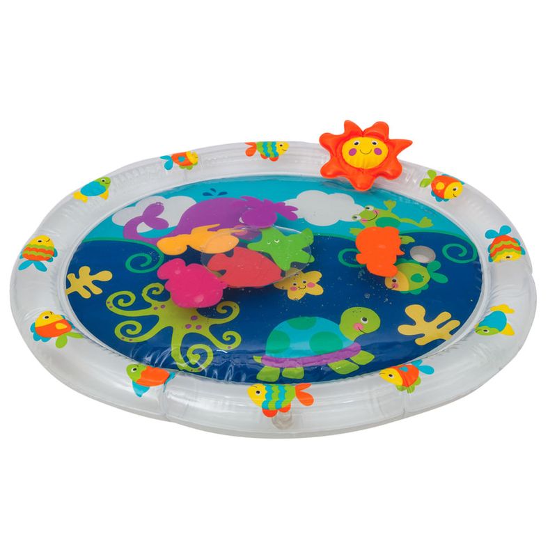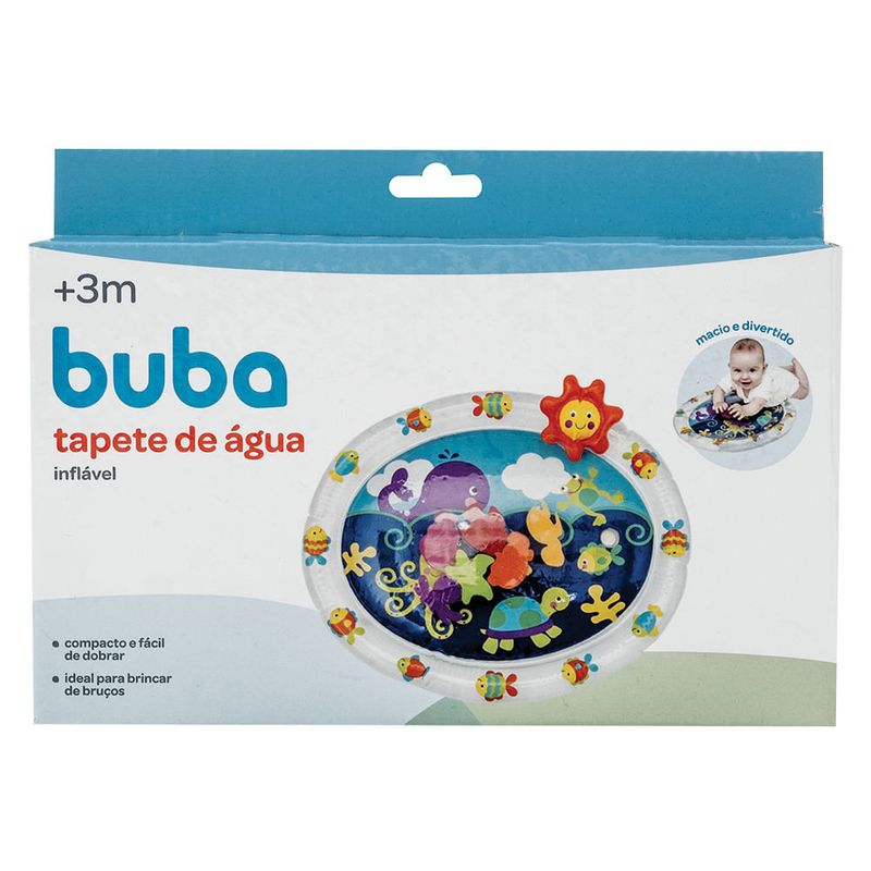O Tapete de Agua Inflavel Mar da Buba e perfeito para o bebe brincar de brucos com conforto. Alem de ajudar a fortalecer os musculos, possui elementos internos que se movimentam, ideais para entreter e estimular os sentidos do bebe.