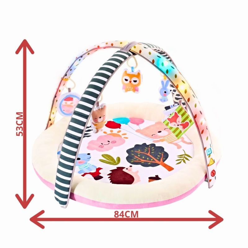 - Conteúdo da Embalagem: 1 Tapete, 2 Arcos, 5 Brinquedos de Pelúcia