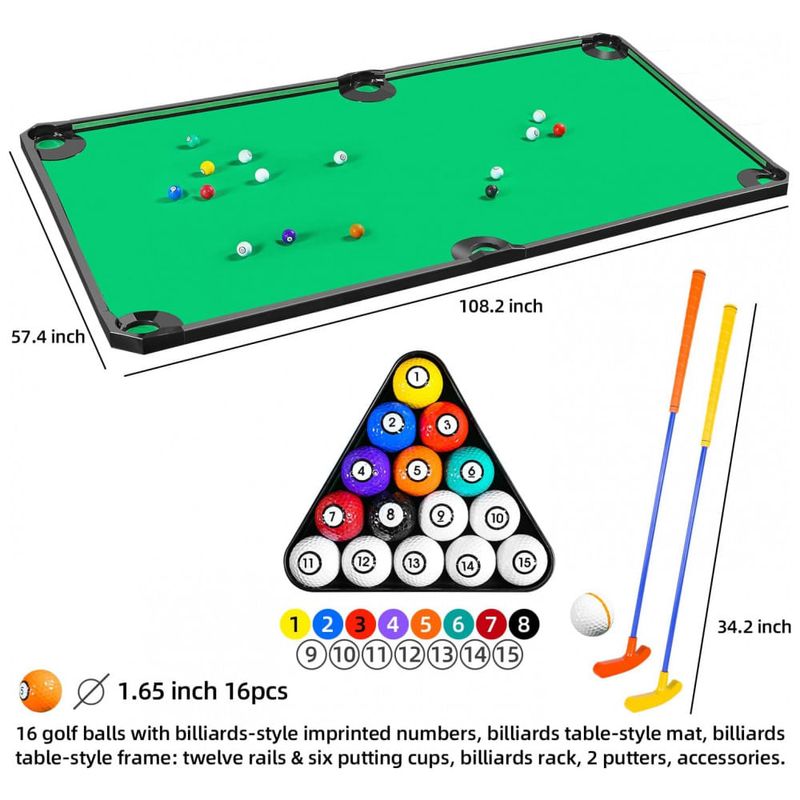 O Conjunto de Jogos de Golfe Putterball é a escolha ideal para criar momentos memoráveis e desafios emocionantes. Transforme sua casa em um campo de golfe indoor e desfrute deste emocionante jogo de golfe e sinuca