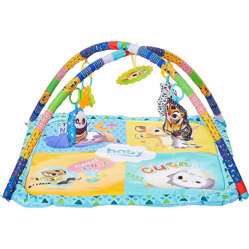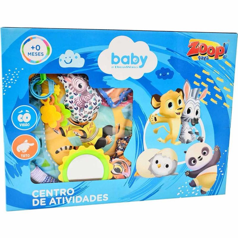 Tapete e Centro de Atividades - Baby Dreamworks - Zoop Toys: deixe seu bebe com todo o conforto nesse Tapete Acolchoado com Centro de Atividades Zoop Toys. Produzido em tecido macio, atoxico, confortavel e com cores vibrantes. Estimula a curiosidade e sensibilidade da crianca e contribui para o desenvolvimento fisico do bebe. Detalhes: • Almofadas dos personagens: Os divertidos Po, Tigresa e Marty deixam o tapetinho ainda mais divertido e ludico. O bebe podera interagir com os personagens da animacao Kung Fu Panda e Madagascar • Chocalho com discos: Esse chocalho possui discos plasticos que fazem barulho quando agitados • Superficie reflexiva: Acessorio reflexivo que imita um espelho. A crianca enxergara Informacoes: • Produto: Centro de Atividades Baby • Marca: Zoop Toys • Colecao: Madagascar • Linha: Baby DreamWorks • Tipo: Centro de Atividades para bebe • Categoria: Tapetes e Ginasios de Atividades • Dimensoes (C x A x L): 47 × 97 x 63 cm • Conteudo: 1 Tapete com Centro de Atividades • Recomendacao: para bebes a partir de +0 meses de idade Especificacoes: • Referencia: DW00009 • Codigo de Barras: 7899788403881 • Tamanho (C x A x L): 61.5 x 46 x 7.5 cm • Embalagem (Peso): 1.245 kg • Material / Composicao: Tecido e Plastico • Registro: 005712/2019 • Certificado: Orgaos Autorizados - OCP´S (Organismos de Certificacao de Produtos) Beneficios do centro de atividades para o bebe: • Estimula o desenvolvimento • Desperta a atencao e curiosidade • Estimula habilidades motoras basicas • Auxilia na hora do sono e aprendizado • Desperta aspectos afetivos e emocionais • Estimula os sentidos visuais, tateis e auditivos • Proporciona momentos de alegria e felicidade • Contribui para um sono mais calmo e tranquilo • Provoca a percepcao de espaco e profundidade Aviso: • As imagens sao meramente ilustrativas • Os pesos, tamanhos e medidas sao aproximados • As cores e estampas dos produtos podem ter variacoes • As informacoes sao de responsabilidade do fabricante ou fornecedor