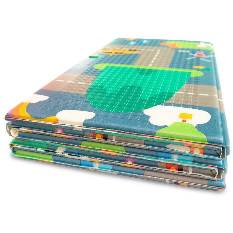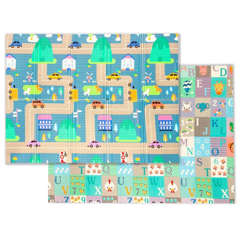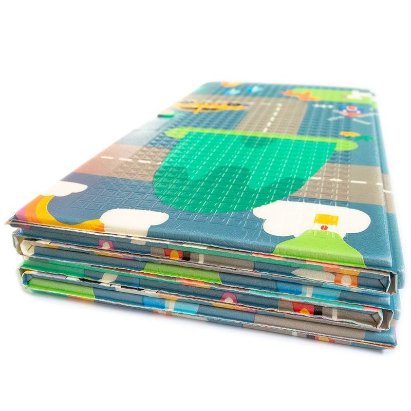 Tapete em XPE dobrável medindo 2,00 x 1,50 x 1cm, dupla face, acabamento em alto padrão, resistente, para uso interno e externo, sacola para armazenagem e transporte. Limpar com pano úmido e sabão neutro líquido.