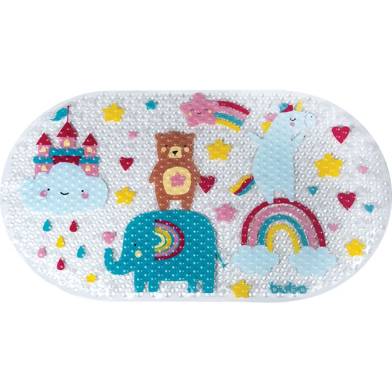 O Tapete para Banho Arco-iris da Buba vai tornar a hora do banho mais segura. Com multiplas ventosas, e ideal para evitar que a crianca escorregue