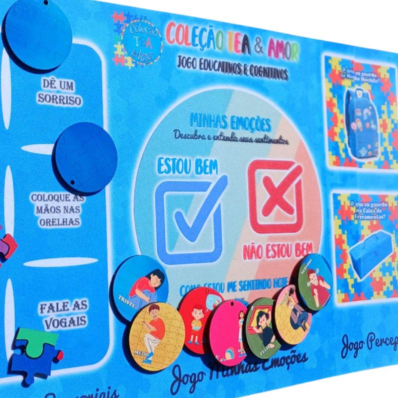 Por fim, temos o encantador Jogo das Emoções, composto por sete peças ilustradas que representam emoções básicas como alegria, tristeza, raiva, medo. Com esse jogo, a criança aprende, aos poucos, a identificar o que sente, a nomear suas emoções e a entender o que os outros também podem estar sentindo — um passo importantíssimo para o desenvolvimento da empatia e das habilidades sociais.