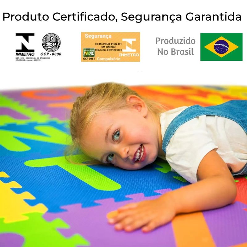 Feito de EVA de alta qualidade, o conjunto é ideal para revestir pisos e paredes, absorvendo impactos e aumentando a segurança durante as brincadeiras.