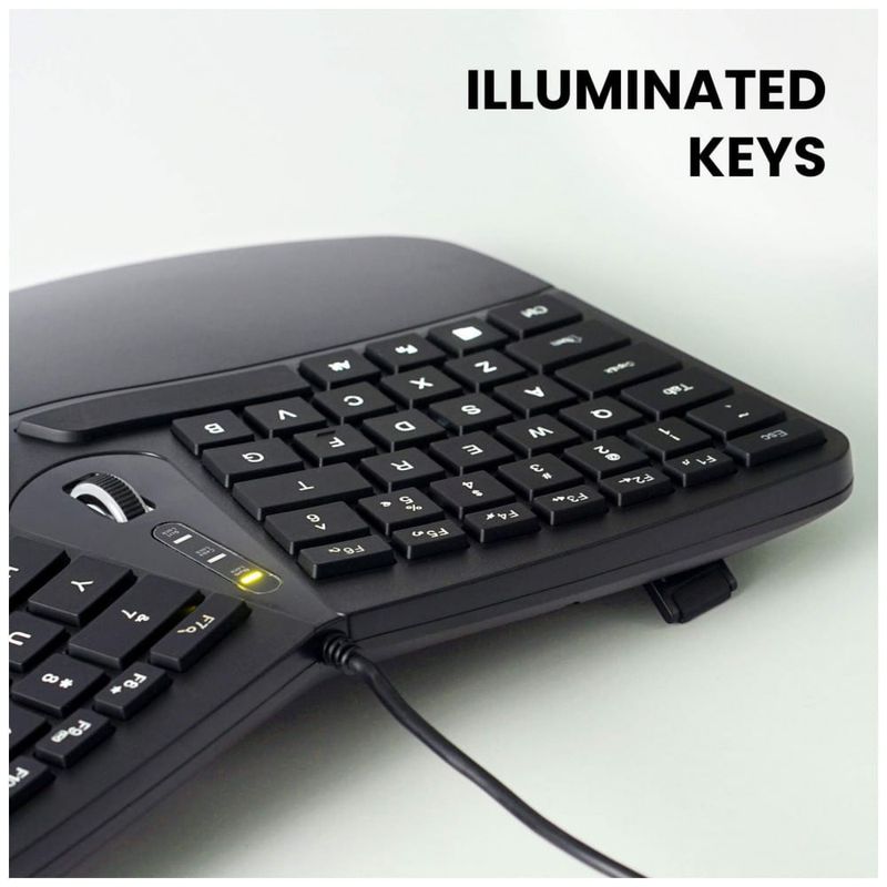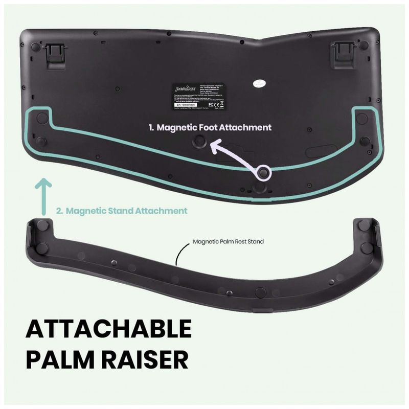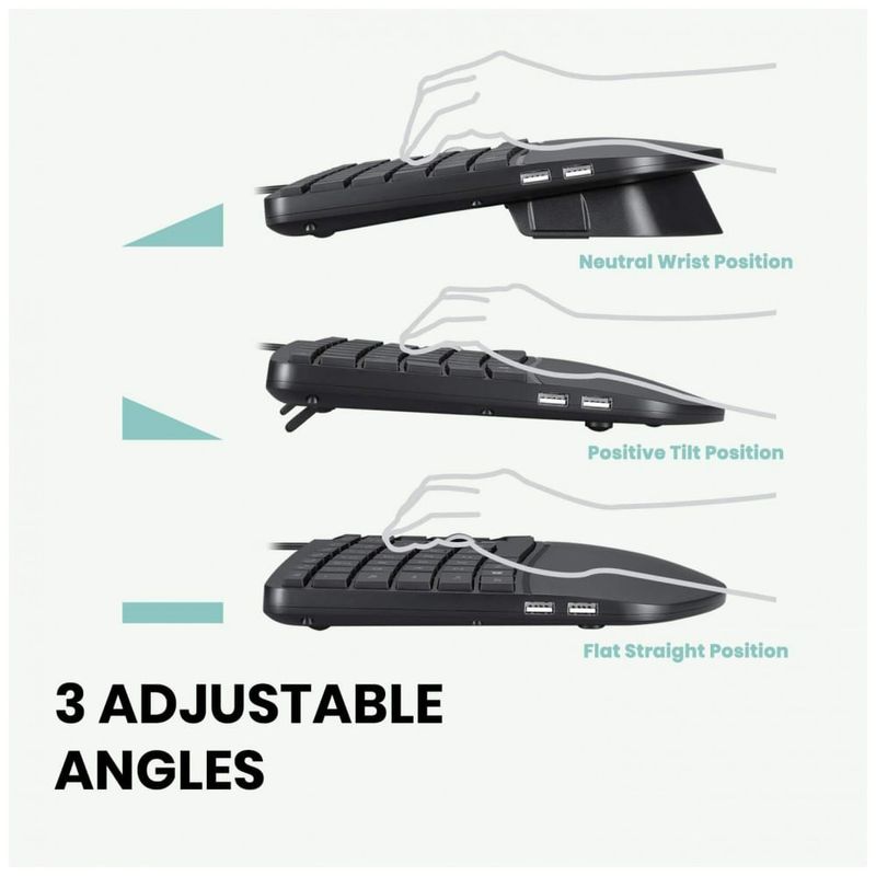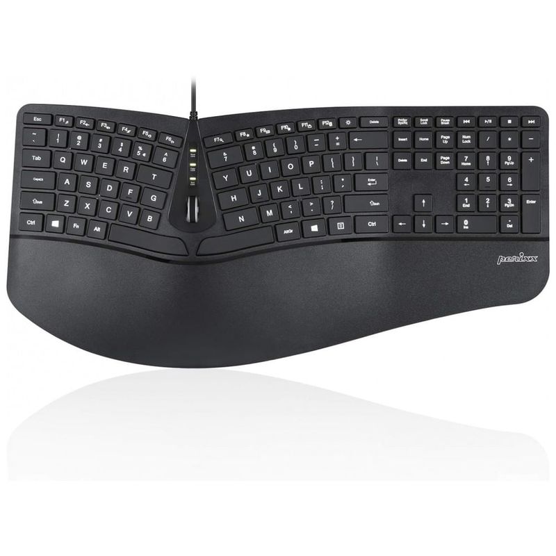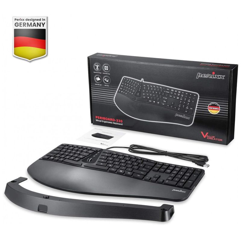 DESIGN ERGONÔMICO DE TECLAS DIVIDIDAS Um teclado de tamanho normal com um design curvo que separa as teclas em vários grupos para otimizar o posicionamento da mão esquerda e direita para reduzir a flexão do pulso para fora durante a digitação PERIBOARD 330 é um conjunto de teclado e um descanso de pulso acoplável com tecnologia de ímã para ajustar a três ângulos de digitação diferentes para uma experiência de digitação descontraída e personalizada Com 12 funções multimídia e teclas de atalho