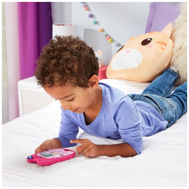 Dê um alô para Gabby neste telefone ameowzing! Criado para se parecer com o telefone que ela usa no programa Gabbys Dollhouse, este telefone em formato de gato faz você sentir como se realmente estivesse conversando com Gabby - ela até responde! Faça música, asse um bolo, jogue amarelinha e faça uma poção em quatro jogos com DJ Catnip, Cakey Cat, Pandy Paws, MerCat e Gabby. Receba correspondências de gato e conheça os amigos felinos de Gabby através de mensagens de voz. Personalize seu telefone escolhendo entre três toques. Purrtastic! Indicado para crianças a partir de 3 anos. Requer 3 pilhas AAA. Pilhas incluídas apenas para demonstração. Novas pilhas recomendadas para uso regular. Ligue para os Gatos Gabby usando este telefone em formato de gato, projetado para se parecer com o de Gabby do programa Gabbys Dollhouse. Faça música com DJ Catnip, asse um bolo com Cakey Cat, jogue amarelinha com Pandy Paws e faça uma poção com MerCat em quatro jogos meowmazing. Não se esqueça de verificar seu correio de gato, ouvir as mensagens de Gabby sobre seus amigos felinos e vê-los na tela. Ligue para Gabby e ela responderá quando você conversar com ela no telefone. Indicado para crianças a partir de 3 anos, requer 3 pilhas AAA, pilhas incluídas apenas para fins de demonstração, novas pilhas recomendadas para uso regular.