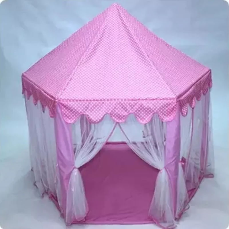 -Conteúdo da Embalagem: 01 Tenda Completa em Poliéster na Cor Rosa e bolsa com alça para transporte,