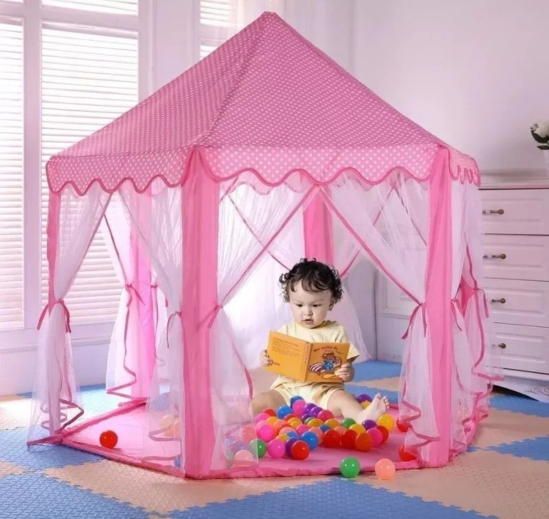 Nesta Tenda você terá muito espaço para brincadeiras, tornando-a o local perfeito para a imaginação jovem explorar. Abra as cortinas brancas para receber os amigos!