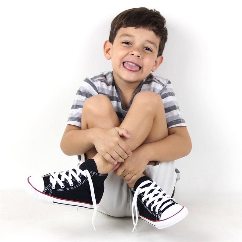 O All Srtar infantil Cano alto, estilo botinha, possui sola emborrachada e fechamento em cadarço. Estilo e conforto para seu bebê!