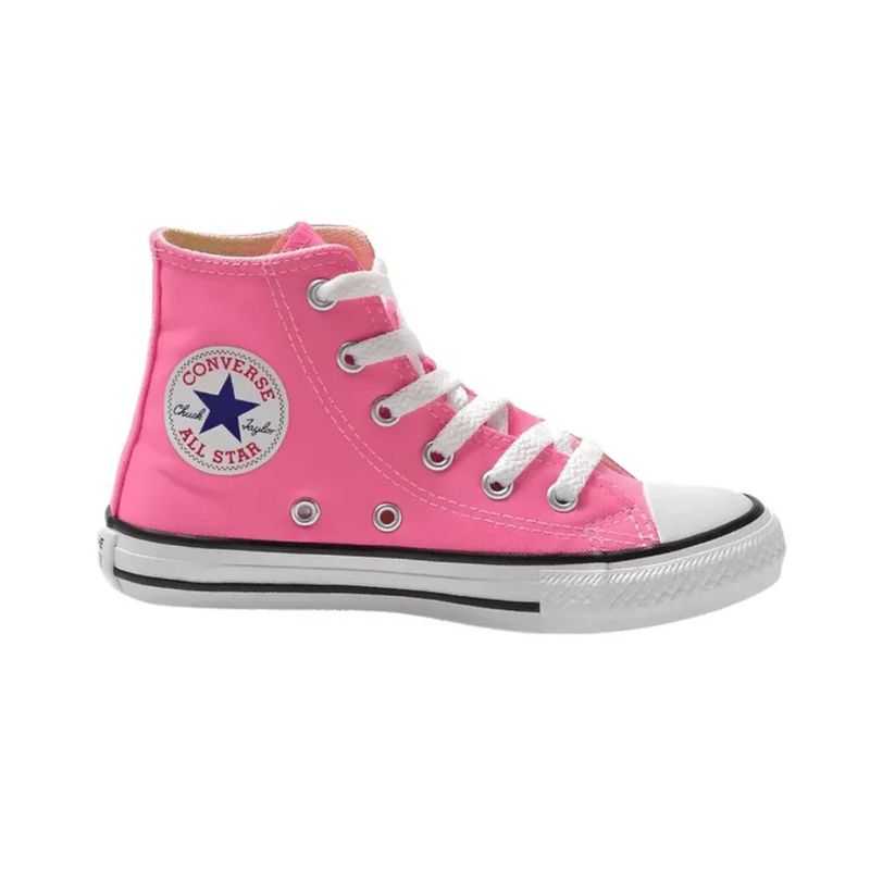 O Tênis All Star Infantil Cano Alto Rosa, é um tênis juvenil estilo botinha, esse tênis para meninas possui o cano um pouco a cima da altura do tornozelo, cadarços e sola em borracha. Eles são antiderrapantes e fáceis de limpar. Na cor rosa, o All Star Infantil é simplesmente encantador!