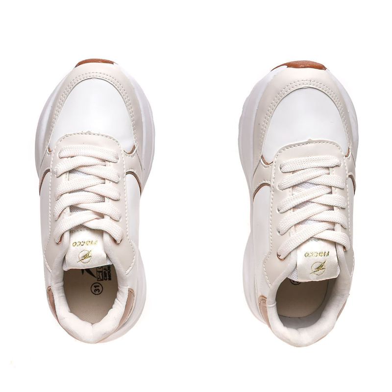 O Tênis Infantil Fiocco Jogging é confeccionado em material sintético com solado antiderrapante. O fechamento é com cadarço de tecido e seus detalhes são com recortes metalizados, o modelo é jogging (similar a um tênis esportivo) e a antressola é mais robusta. Combina com visuais casuais, com calças ou shorts.