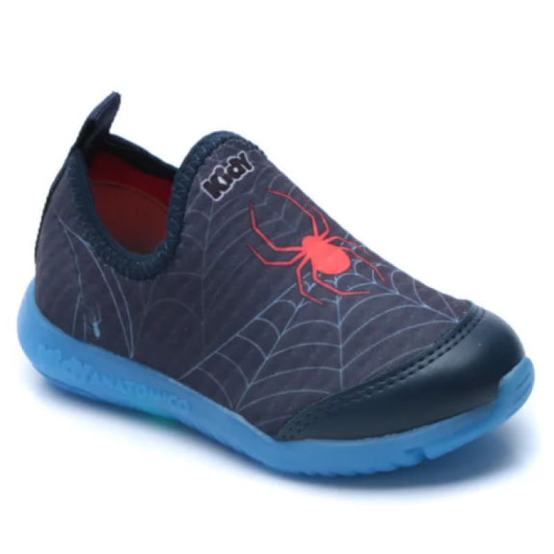 O Tênis Kidy Light Aranha Infantil Masculino vem no modelo Slip On e é confeccionado em tecido com recorte em Napa no bico, possui tira elástica para facilitar o calce e melhor ajuste aos pés, palmilha acolchoada, para melhor aderência e durabilidade e forro interno em tecido. A sola e entressola são emborrachadas, com destaque para as luzinhas de led que acendem a cada passo. Perfeito para os meninos!