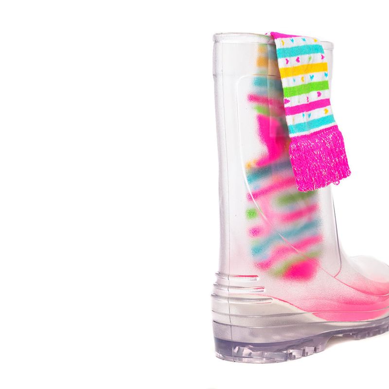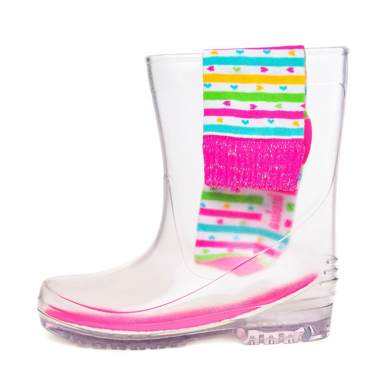 Produto com o Cabedal de Pvc, Palmilha de Eva, Solado de Pvc, Transparente com meia