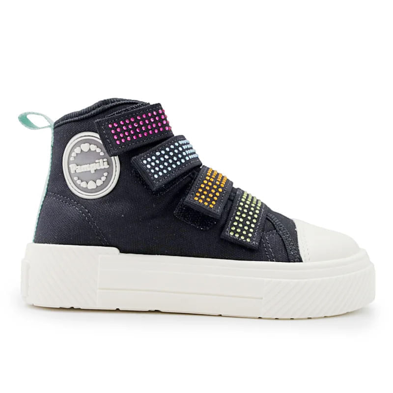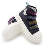 O Tênis Infantil Pampili Cano Alto Velcro é um modelo maravilhoso com cano médio, para as estilosas, fica uma gracinha com vestidos, shorts e calças. Sua facilidade em calçar se dá as quatro tiras em veIcro.