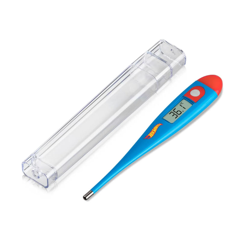 Termômetro Digital Hot Wheels - Multilaser Informações do Produto: Com o Termômetro Digital HotWheels, a temperatura de toda a família é monitorada de maneira rápida, prática e segura! O termômetro digital armazena a última medição para facilitar o acompanhamento da temperatura, além de contar com um resultado rápido dentro de apenas 1 minuto. Desligamento automático A prova d'água