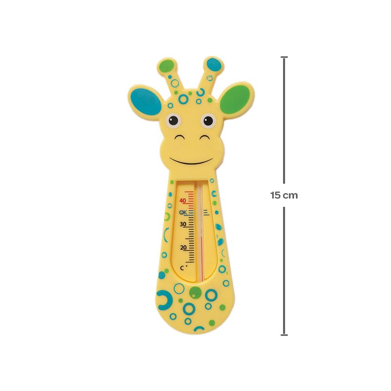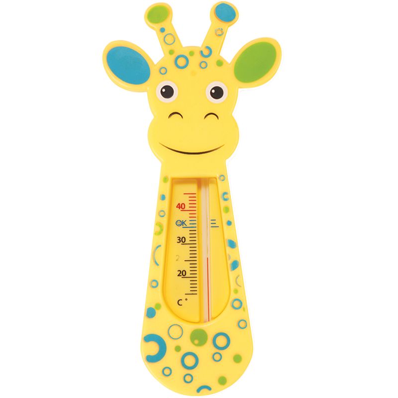 Em formato de girafa, ele mede a temperatura da água na banheira evitando Queimaduras no seu bebê e evitando que fique desconfortável durante o banho.