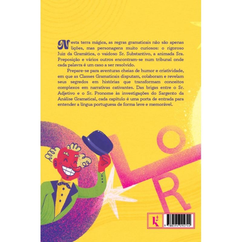 Nesta terra mágica, as regras gramaticais não são apenas lições, mas personagens muito curiosos: o rigoroso Juiz da Gramática, o vaidoso Sr. Substantivo, a animada Sra. Preposição e vários outros encontram-se num tribunal onde cada palavra é um caso a ser resolvido. Prepare-se para aventuras cheias de humor e criatividade, em que as Classes Gramaticais disputam, colaboram e revelam seus segredos em histórias que transformam conceitos complexos em narrativas cativantes. Das brigas entre o Sr. Adjetivo e o Sr. Pronome às investigações do Sargento da Análise Gramatical, cada capítulo é uma porta de entrada para entender a língua portuguesa de forma leve e memorável. Idade sugerida: a partir de 7 anos. Texto adaptado para a gramática do Português.