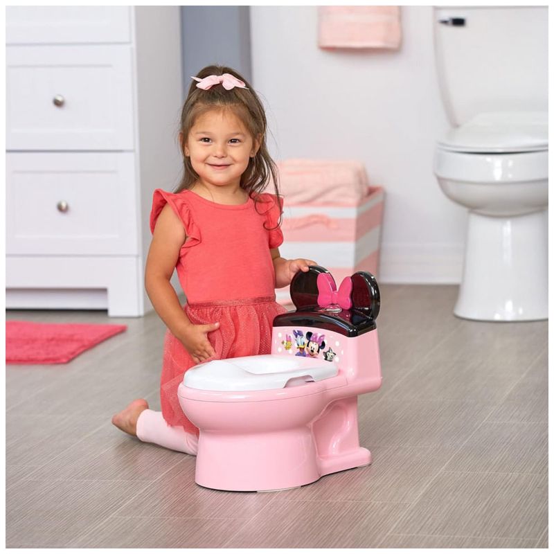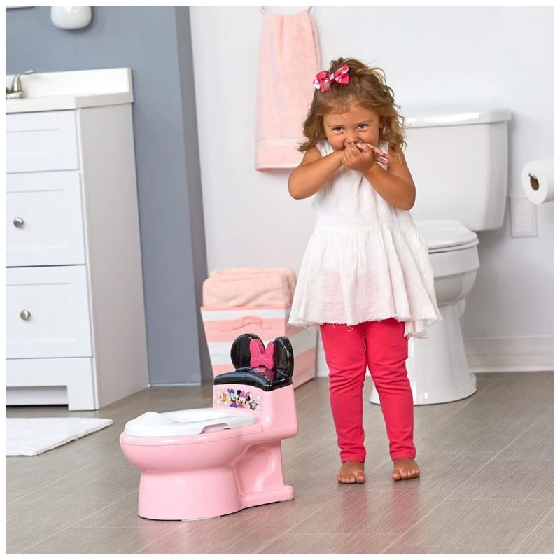 POTTY TRAINER SEAT O sistema de treinamento potty inclui um penico de treinamento que apresenta personagens da Disney e um assento de treinador com proteção contra respingos para uma transição suave para o banheiro da família