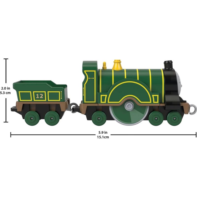 Vem com conectores de plástico para acoplar vagões de carga, carros ou outros trens de Thomas e seus Amigos™ (carros e peças de brincar adicionais vendidos separadamente e sujeito à disponibilidade).
