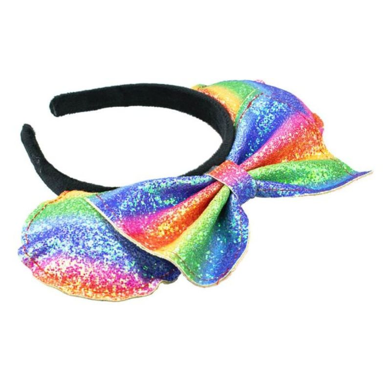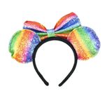 Tiara com orelhas da Minnie e laçinho característico da ratinha da Disney na cor arco-íris. Material: poliéster e plástico SKU: DYG101TR-MK2-D Peso 70 gramas Altura 20 cm Largura 2 cm Comprimento 27 cm EAN: 4894290288622