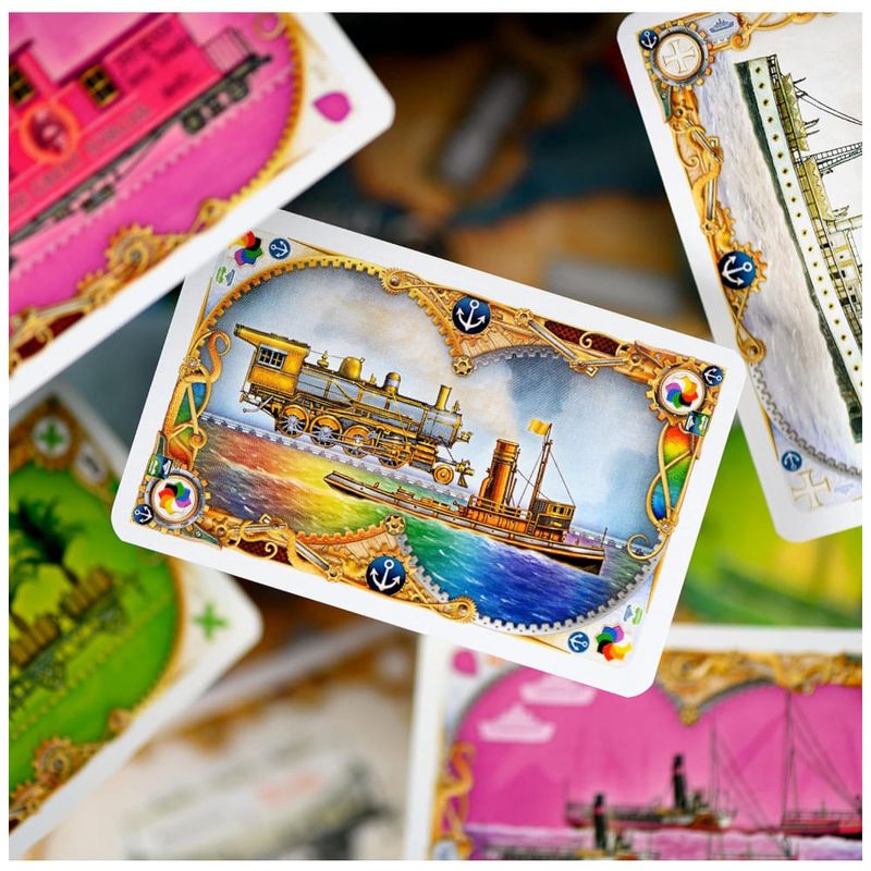 JOGO DE ESTRATÉGIA Construa ferrovias e rotas marítimas em todo o mundo neste jogo de tabuleiro estratégico e rápido. Em todo o mundo, trilhos de trem conectam países e continentes, e os mares não são mais obstáculos, pois enormes navios a vapor que transportam centenas de passageiros navegam pelos oceanos.