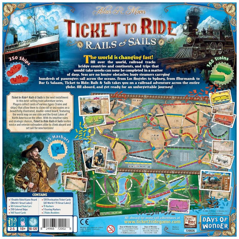 JOGO PARA FAMÍLIAS E AMIGOS Ticket to Ride Rails Sails leva a série Ticket to Ride para o próximo nível Ferroviários veteranos, bem como familiares e amigos, terão o prazer de zarpar para os s horizontes da Ticket to Ride Rails and Sails.