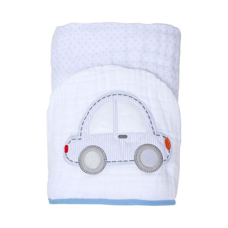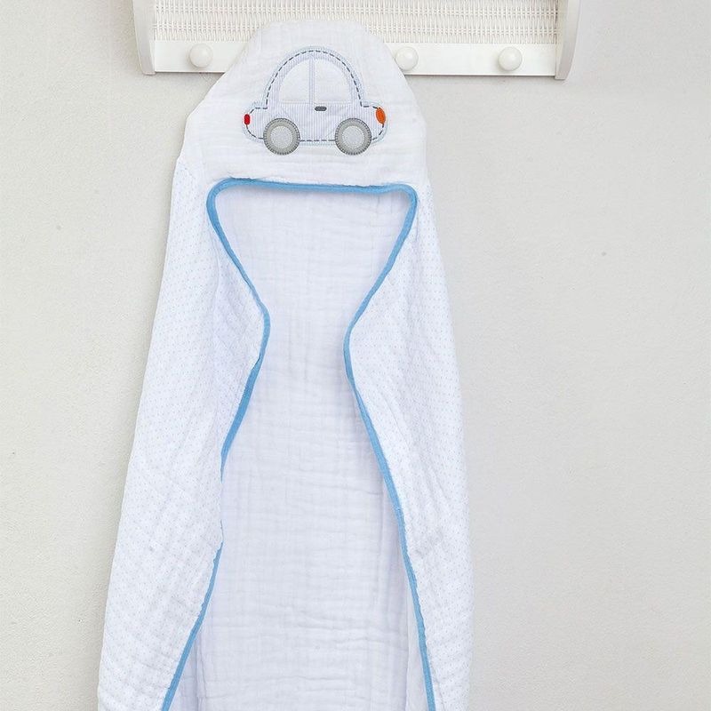 Toalha De Banho Soft Papi Toys C/ Capuz Bordado Carro