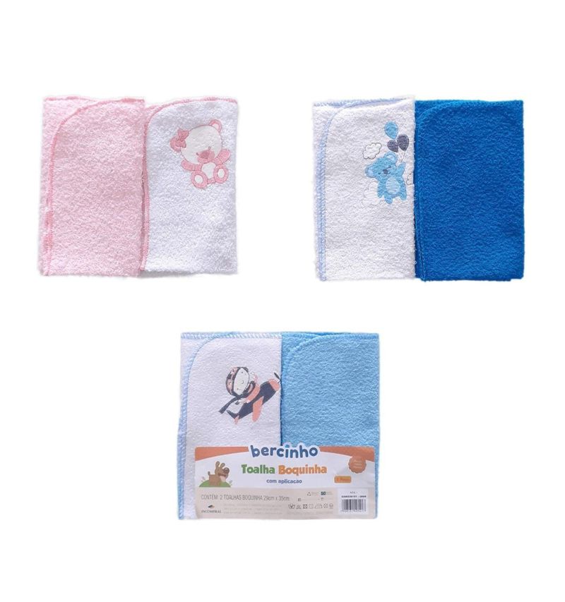 Toalha de Boquinha com Aplicação em Puff – 2 Unidades (29 x 35 cm) – Incomfral