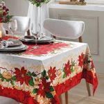 A Toalha de Mesa Retangular Dohler Athenas Clássicos de Natal mede 1,40m x 2,10m e é ideal para mesas retangulares de 6 lugares. Sua estampa natalina, com uma moldura vermelha, traz ilustrações de alguns dos símbolos mais tradicionais do natal traz o espírito do natal para o seu lar. Confeccionada em algodão e poliéster, é de fácil conservação e deixa sua mesa posta muito mais encantadora.