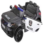 FUNÇÕES MÚLTIPLAS Passeio em carro policial, megafone real, luzes e faróis policiais de trabalho, buzina, espelho retrovisor, entrada e reproduções de MP3, interruptor de alta , média , baixa velocidade, com portas que podem abrir e fechar. Dando ao seu filho uma experiência quase real de dirigir um carro de polícia.