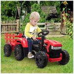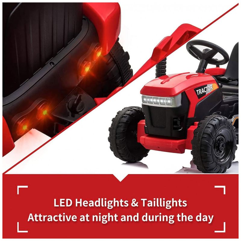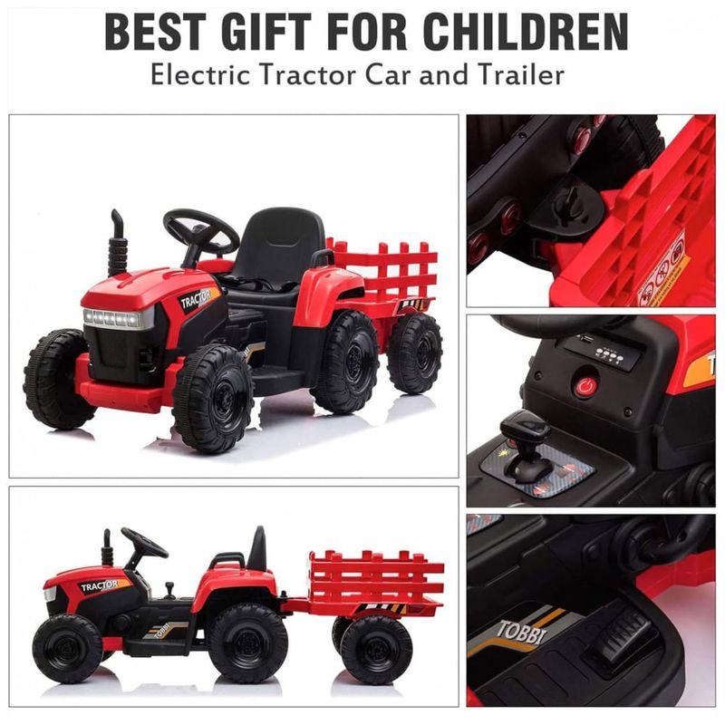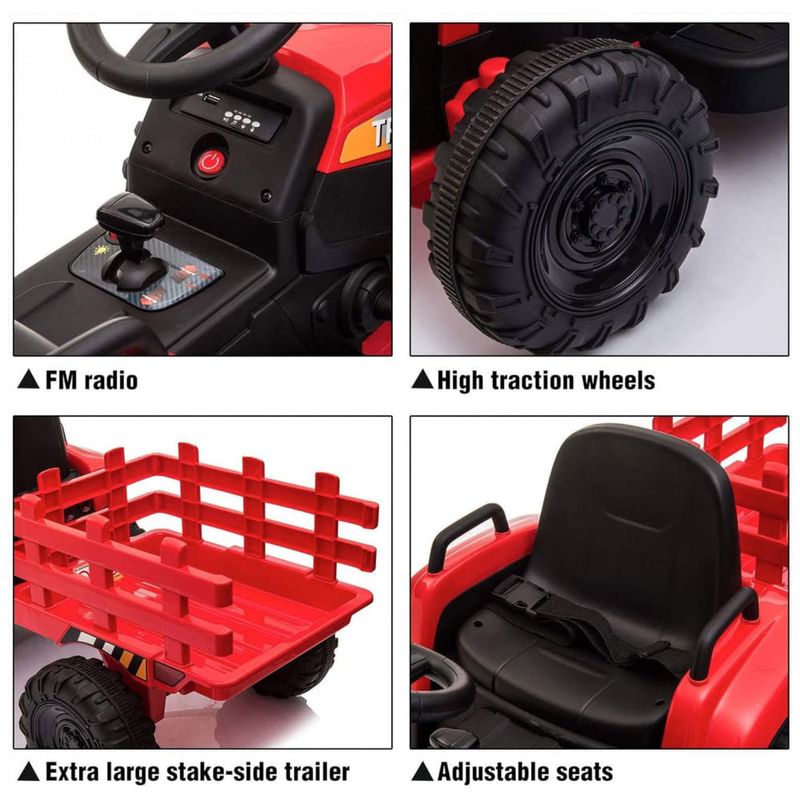 Este trator de brinquedo está configurado com um grande trailer que só pode ser para transportar itens não muito pesados, como livros e brinquedos, mas não pessoas. Juntamente com a buzina acionada pela pressão do ar que fará sons engraçados, seu filho poderá se divertir ainda mais ao dirigir.