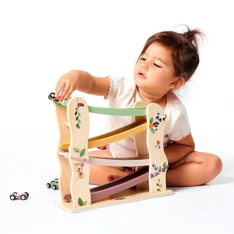 TORRE DE CARROSD E MADEIRA TINY LOVE BOHO Uma incrível e divertida rampa com 4 carrinhos que deslizam facilmente e que vão proporcionar horas de diversão e desenvolvimento às crianças. A Torre de Carros de Madeira da Tiny Love oferece às crianças horas intermináveis de diversão. Seus 4 carros de rápida rolagem, deslizam pela rampa, dando aos pequenos algumas informações sobre as maravilhas da gravidade e do movimento. Parte da coleção Boho Chic, ela conta com cores suaves e design inspirado na natureza, Seja brincando de forma independente ou com irmãos ou pais, a Torre de Carros de Madeira oferece a mistura ideal de diversão e desenvolvimento. O Sistema de Desenvolvimento Único de Tiny Love se concentra em 6 HABILIDADES ESSENCIAIS. Criado com amor e cuidado por nossos especialistas em desenvolvimento infantil, este sistema apoia os bebês à medida que crescem. Explore como várias habilidades entram em jogo em cada estágio da emocionante jornada de desenvolvimento do seu bebê. - Rampa de madeira inspirada na natureza em formato de árvore - 4 velozes carrinhos de madeira - Personagens, cores suaves em tons terrosos da coleção Boho Chic trazem tranquilidade e sofisticação.