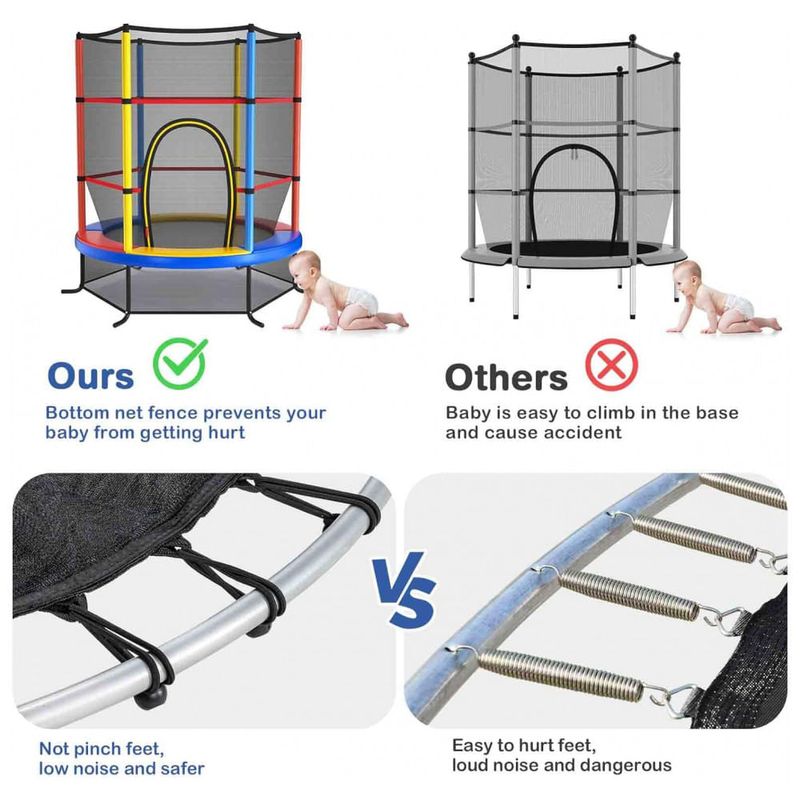 Descrição Apresentando um invólucro superior e uma rede de segurança inferior, nosso trampolim pode fornecer proteção total para seus filhos. E os tubos de aço são preenchidos com espuma EPE macia para evitar que seus filhos sejam atingidos. Além disso, existem 4 pernas curvas esticadas, que aumentam muito a estabilidade do trampolim para garantir a segurança das crianças. Além desses detalhes, nosso trampolim também possui excelente desempenho de salto. O jump pad vem com 30 cordas de tensão com alta elasticidade, fazendo as crianças pularem mais alto. É uma forma interessante de exercitar o equilíbrio e a coordenação das crianças. Projetado em tamanho compacto, é ideal para uso interno e externo. Possui 30 cordas de tensão de alta elasticidade proporcionam excelente desempenho de salto Rede de segurança 360 evita que as crianças saltem acidentalmente Pernas curvas esticadas evitam que o trampolim caia Tubo de aço galvanizado preenchido com espuma EPE para evitar que as crianças sejam atingidas A porta com zíper é conveniente para as crianças entrarem e para fora A estrutura hexagonal resistente aumenta a estabilidade Tamanho compacto ideal para uso interno e externo O pacote inclui 1 X Trampolim 1 X Bolsa de acessórios 1 X Instrução Por que você escolhe nosso trampolim infantil A porta com zíper em forma de U é conveniente para as crianças entrarem e saírem Rede razoável altura para evitar que as crianças saltem acidentalmente Estrutura acolchoada protetora Com rede de proteção completa, o trampolim infantil lhe dará a confiança necessária para deixar seu filho pular em paz E o tubo de espuma pode proteger seu filho de lesões, garantindo a segurança total do seu criancinhas. Perfeito para exercícios infantis A rede do gabinete tem uma porta com zíper para as crianças entrarem e saírem. Com seu design transparente, você pode ficar de olho em seus filhos enquanto faz outras coisas. A rede inferior também mantém os seus filhos afastados do espaço. Enquanto isso, as pernas estendidas podem aumentar a estabilidade e evitar tombamento para garantir segurança extra. Construção estável e durável Feito de tubo de aço galvanizado no interior, o trampolim infantil é sólido e estável o suficiente para suportar até 300 libras. E a superfície galvanizada é resistente à ferrugem, aumentando a resistência, o que é de grande durabilidade com longo tempo de serviço. Fácil de montar Nosso trampolim infantil é equipado com 30 cordas de tensão, que tem boa elasticidade, permitindo que as crianças pulem mais alto. Enquanto isso, as cordas de tensão não são fáceis de deformar para uso a longo prazo e facilitam a instalação. Com um peso líquido de apenas 24 libras, o trampolim pode ser facilmente movido para onde você quiser. Construído com detalhes atenciosos O tapete de salto em PP antiderrapante e resistente ao desgaste e a almofada de segurança em PVC podem fornecer excelente desempenho de salto, o que faz com que seu filho se sinta um exercício emocionante e divertido. E também pode ajudar seu filho a desenvolver um senso de coragem e melhorar as habilidades de equilíbrio, o que é especialmente benéfico para seu filho