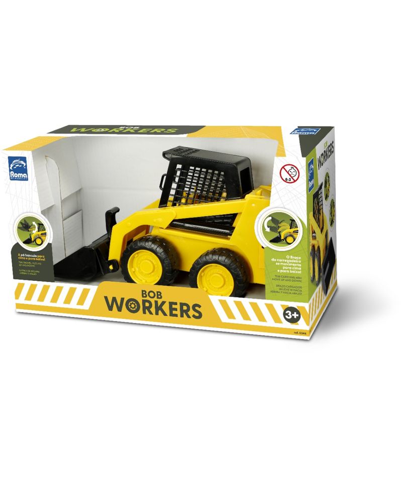 Chegou o Bob Workers, seu super basculamento! Não possui partes metálicas e não enferruja! A pá bascula para cima e para baixo. O braço da carregadeira se movimenta para cima e para baixo. Chassis com acabamento. você no controle dessa máquina incrível!