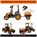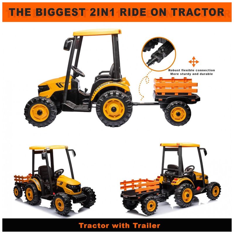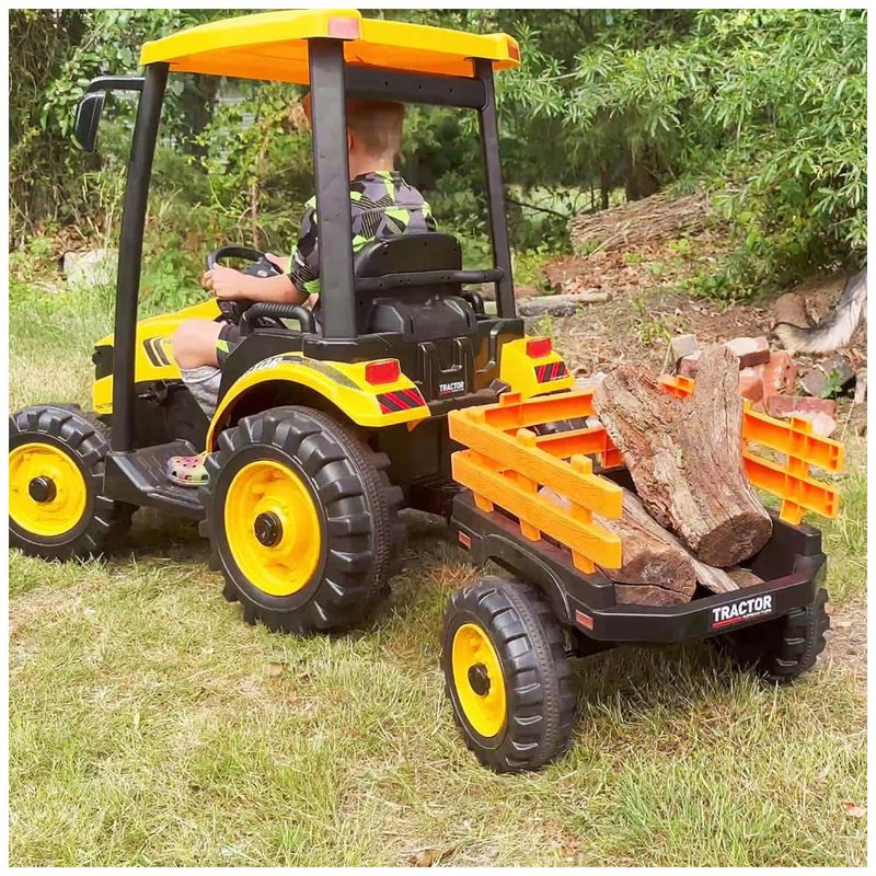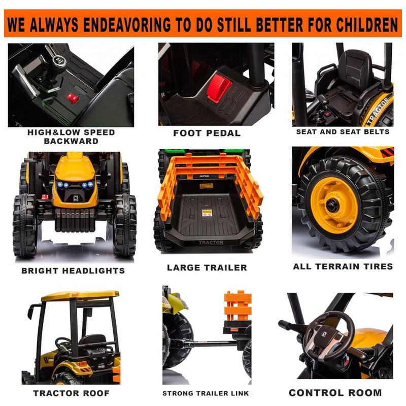 Trator para crianças 24V com reboque destacável As crianças andam em um trator equipado com um reboque destacável. As crianças vão adorar carregá lo, dirigir até o destino e descarregá lo. O trailer não só pode zenar alguns pequenos brinquedos e lanches, mas também permitir que as crianças dirijam no quintal ou no jardim e carreguem ferramentas de jardinagem para mais diversão. Anexa e desconecta facilmente, até mesmo seus filhos pequenos podem colocá lo e retirá lo.