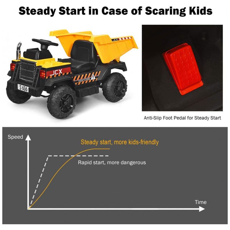 Excitante condução de escavadeira: A escavadeira HONEY JOY 12V está equipada com carregador frontal ajustável, permitindo que as crianças controlem manualmente e removam areia ou neve com pá de forma flexível. O que é mais divertido é que a criança pode facilmente avançar, retroceder e parar sozinha por meio do pedal elétrico e do volante. Buzina extra traz uma experiência de condução real.