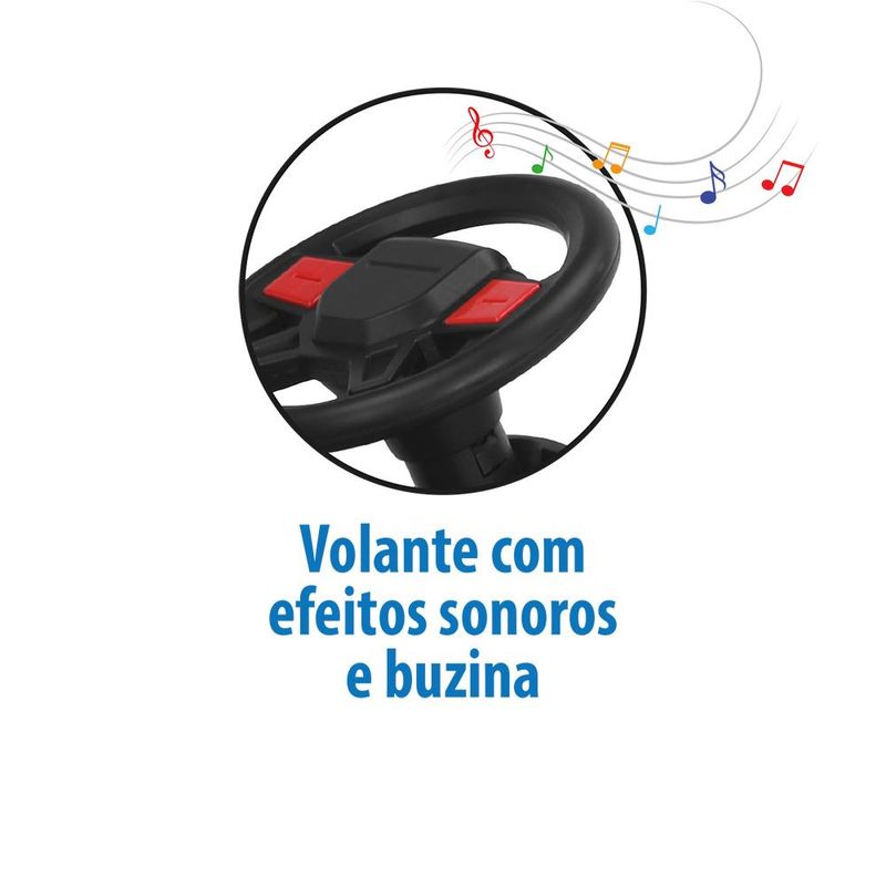 • Painel multimídia com sons interativos, entrada USB, cabo P2 e indicador de bateria.