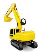 Você vai se divertir muito com essa máquina super articulável! A pá se desloca fixa em um eixo, antebraço se desloca na vertical e o braço de elevação sobe e desce! Chassis com acabamento. Não possui partes metálicas e não enferruja. Possui alça de comando para você operar sua máquina!