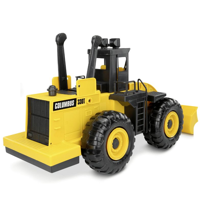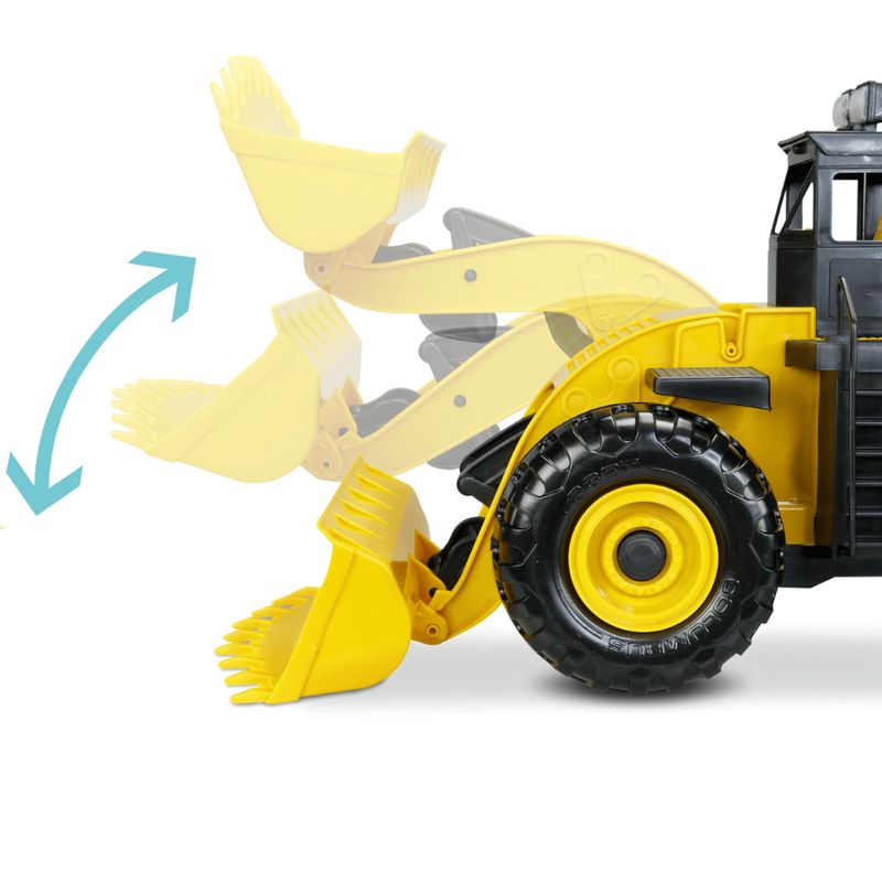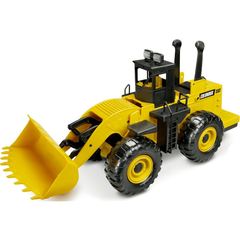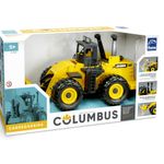 A Carregadeira Columbus é uma máquina totalmente controlada pela criança. Ela possui duas alavancas que comandam o braço e a caçamba.