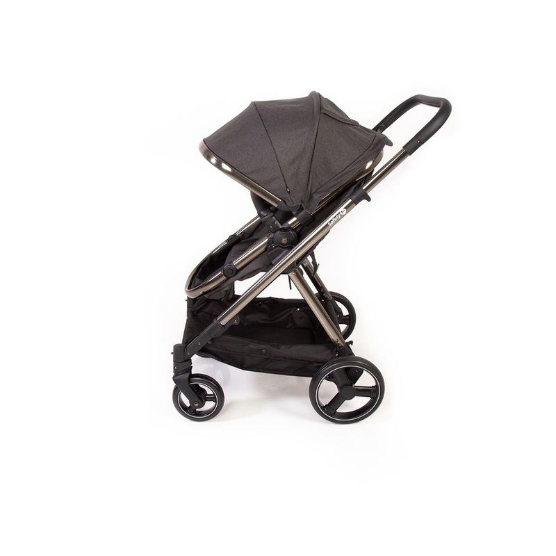 O carrinho possui estrutura leve em alumínio, com acabamento cromado, moderno e atual, revestimento especial na manopla e barra frontal, capota ajustável, ampla, com proteção solar UV50+ e visor, assento reversível, pode ser usado virado para os pais ou para o mundo, acompanhando o crescimento do bebê, facilmente converte-se em assento de passeio, reclinável em 4 posições, encosto ajustável em 2 posições, o diferencial do apoio dos pés, emborrachado, ajustável em 7 posições, que proporciona um maior conforto para os maiorzinhos e praticidade para os pais, cinto de 5 pontos com ajuste de largura e 3 posições de altura, manopla com 5 posições de altura, cesto espaçoso, rodas traseiras grandes, amortecedores, freio centralizado, em um único ponto, com indicador de travamento, controle de giro 360° nas rodas dianteiras, muito mais conforto para o bebê e para dirigir. Fechamento rápido, que pode ser feito com ou sem o assento.