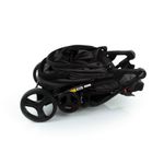 O assento ainda possui um colchonete macio e lavável, cinto de segurança com 5 pontos, protetores acolchoados e ajustáveis em altura e largura, enquanto o apoio para os pés conta com 3 posições. Freio centralizado, rodas grandes para maior estabilidade e com giro 360° nas dianteiras. Fechamento tipo envelope, fácil e rápido.